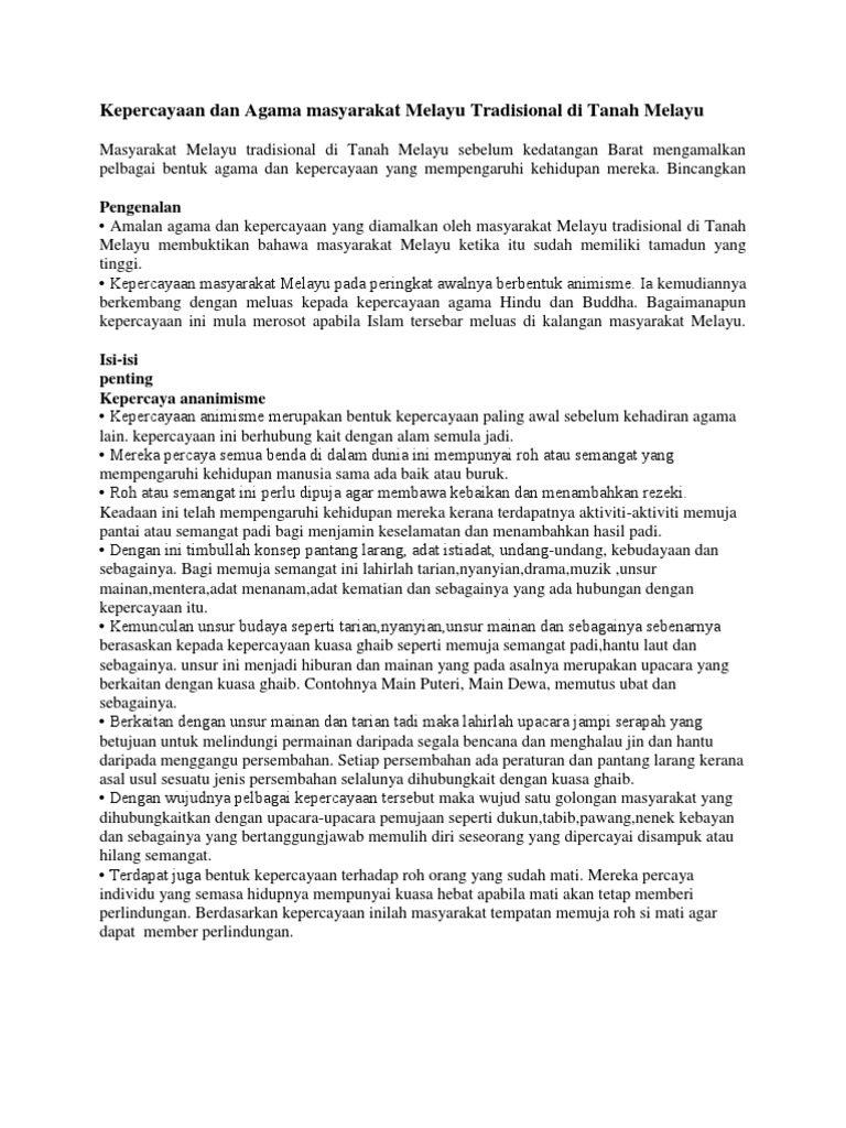 Kepercayaan Dan Agama Masyarakat Melayu Tradisional Di Tanah Melayu