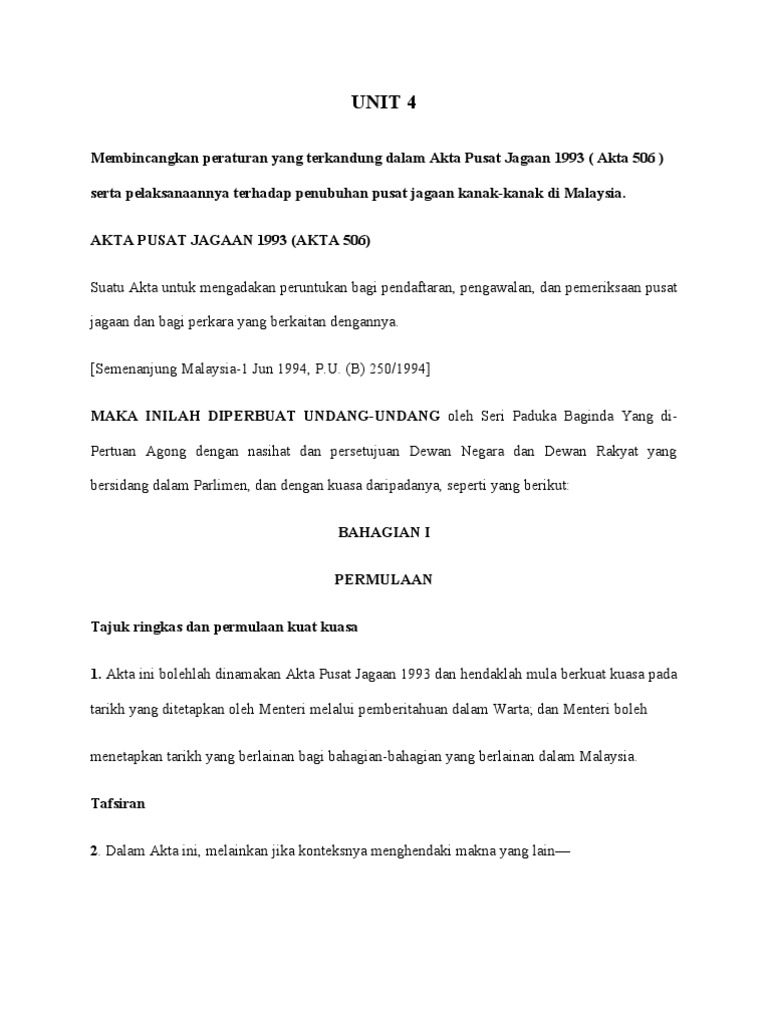 Akta Taman Asuhan Kanak Kanak 308 Dan Akta Pendidikan 1996 Akta 550