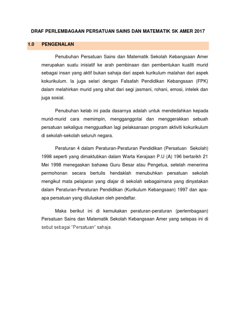 Perlembagaan Kelab Sains Dan Matematik