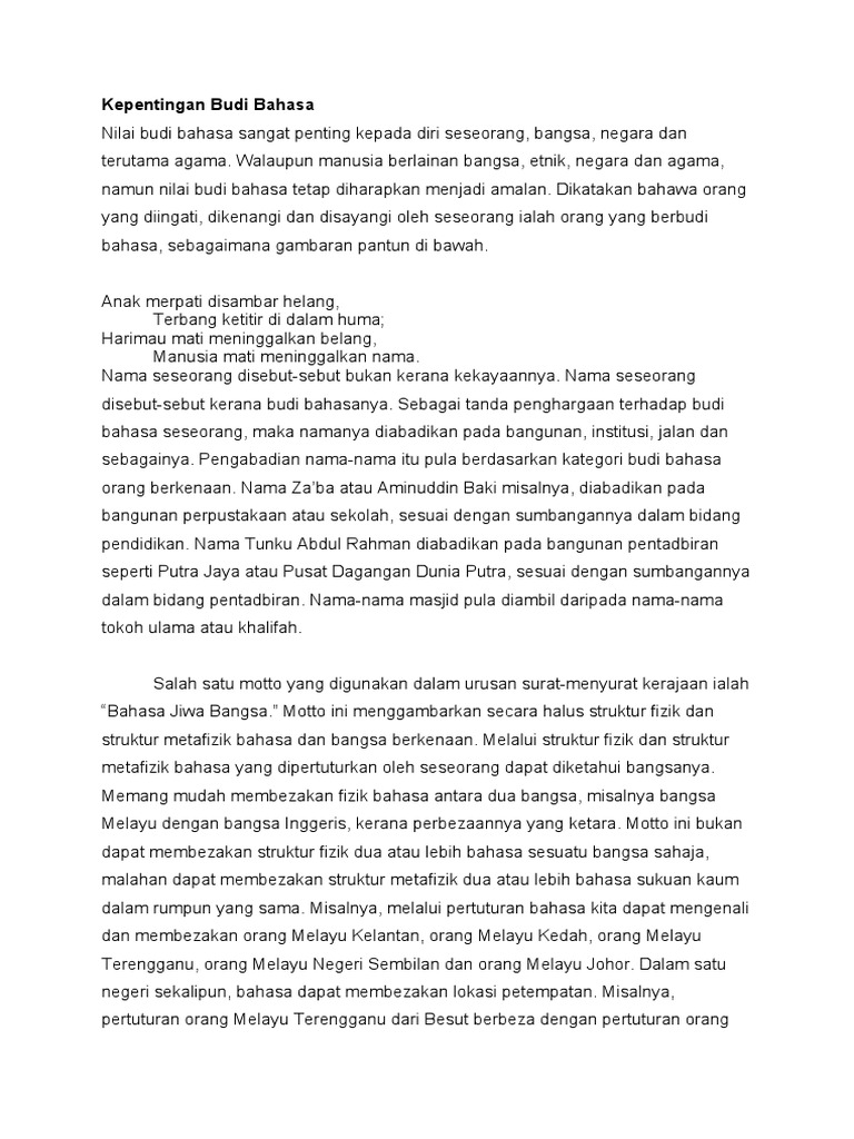 Usaha Memupuk Amalan Berbudi Bahasa Dan Kepentingannya Docx