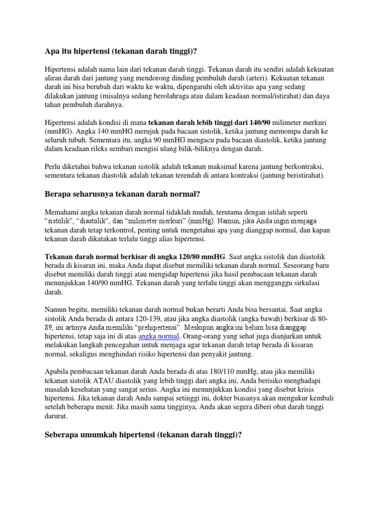 Apa Itu Hipertensi Tekanan Darah Tinggi