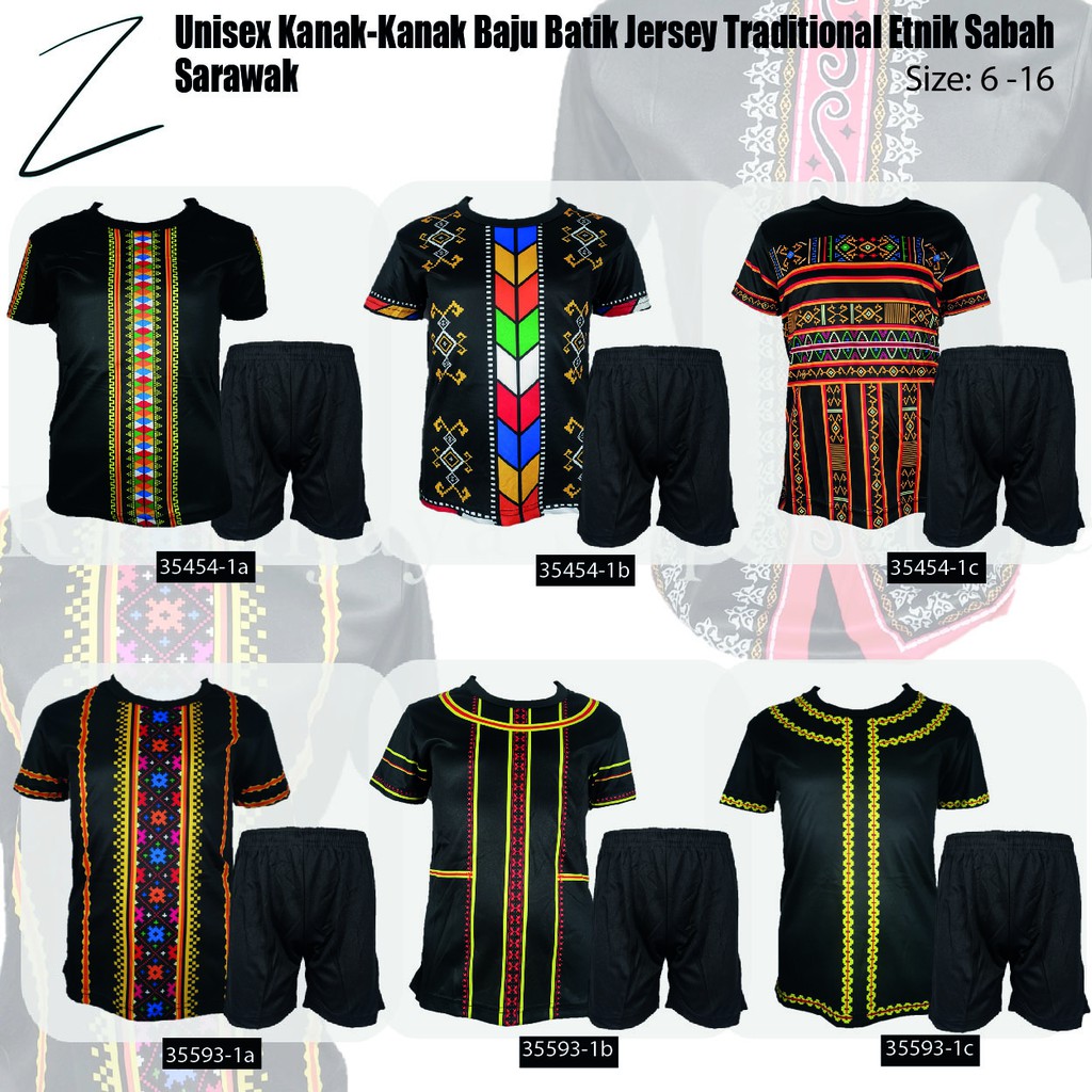 Hot Wholesales Unisex Kanak Perempuan Baju Batik Jersey Traditional Etnik Sabah Sarawak Size 6 16 Shopee Malaysia