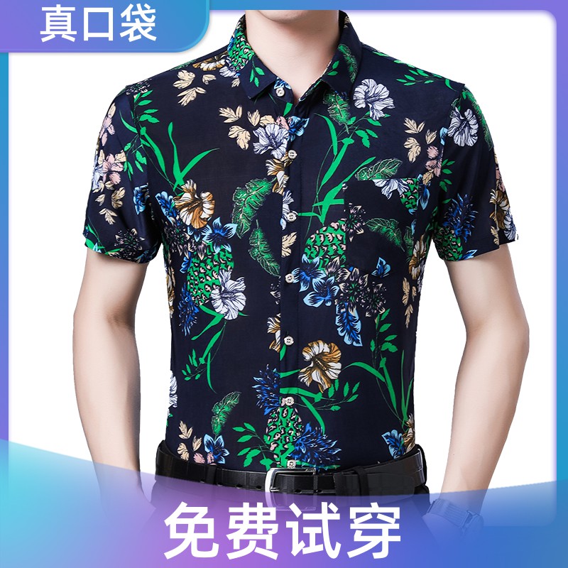 Kemeja Lelaki New Arrival Baju Kemeja Lelaki Ready Stock Gao Han Baru Saku Sutera Ais Sutera Lelaki Muda Dan Pertengahan Umur Mencetak Baju Saiz Besar Baju Lengan Pendek Bukan Besi Produk Baru