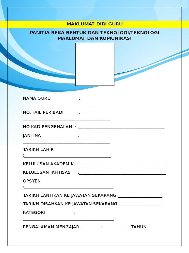 Contoh Borang Biodata Guru Untuk Fail Panitia
