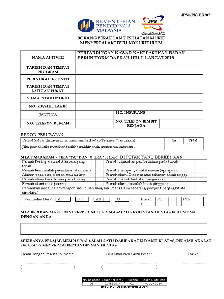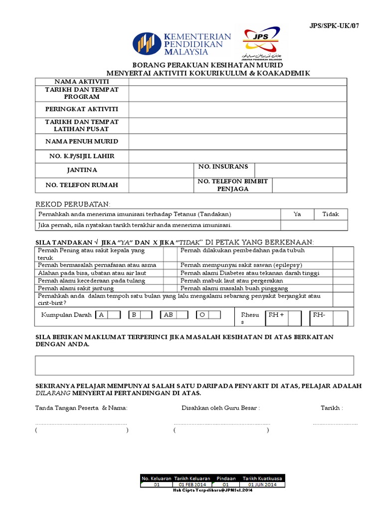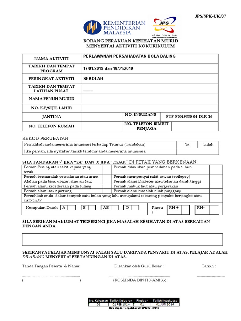 Borang Perakuan Kesihatan Murid Dna Kebenaran Kem