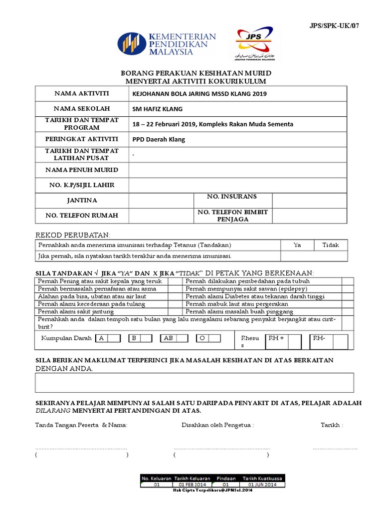 Borang Perakuan Kesihatan Mss Selangor 2018
