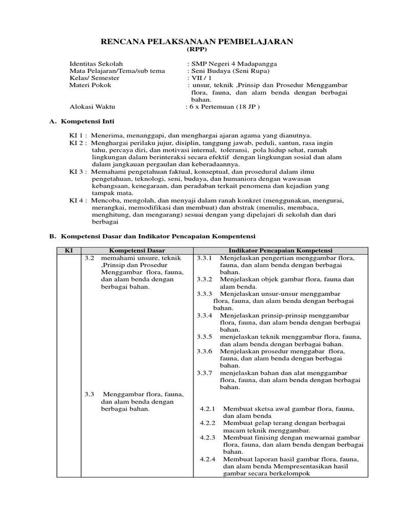 Doc Rpp Kelas Vii 2019 2020 Seni Rupa Bondhan Herywangsa Academia Edu
