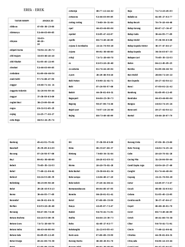 Erek Erek 4d Abjad Dalam Buku Tafsir Mimpi Lengkap Erek Erek Mimpi
