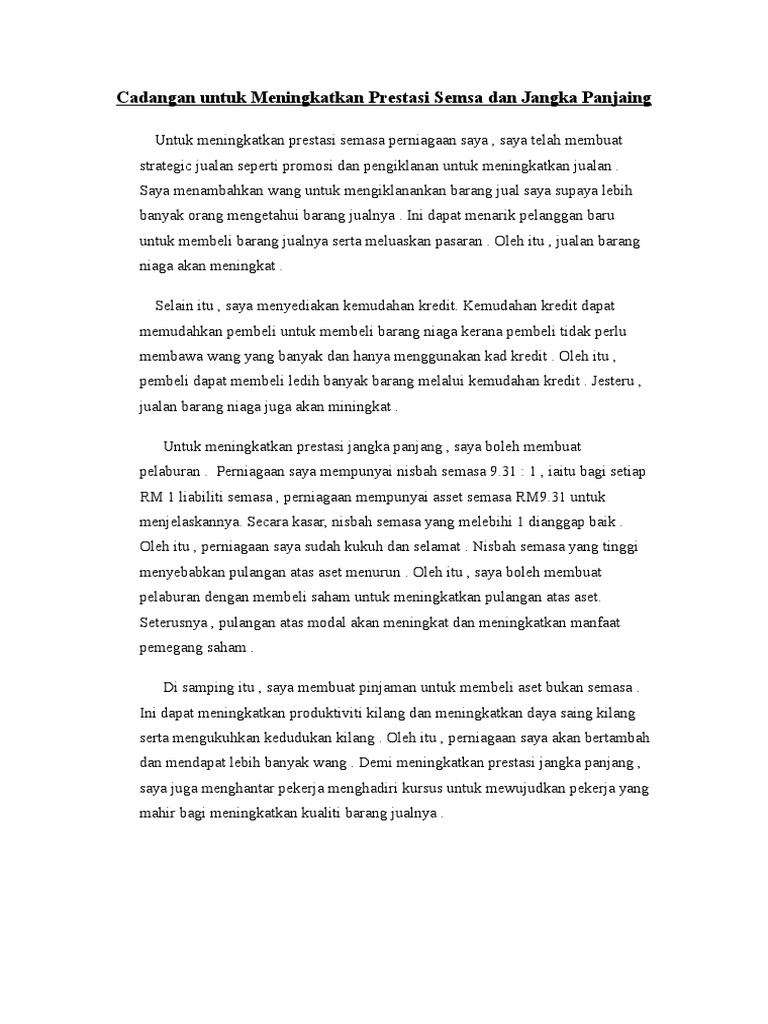 Doc Cadangan Untuk Meningkatkan Prestasi Semasa Dan Prestasi Jangka Panjang Ms Thya Academia Edu