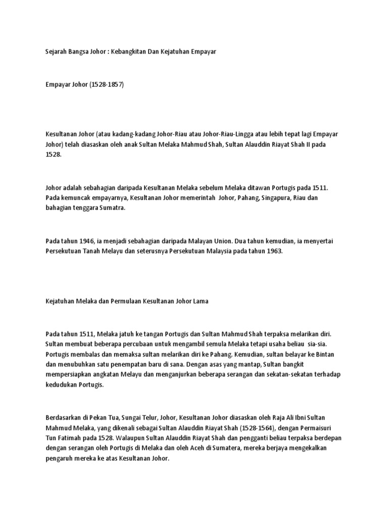 Sejarah Bangsa Johor Kebangkitan Dan Kejatuhan Empayar