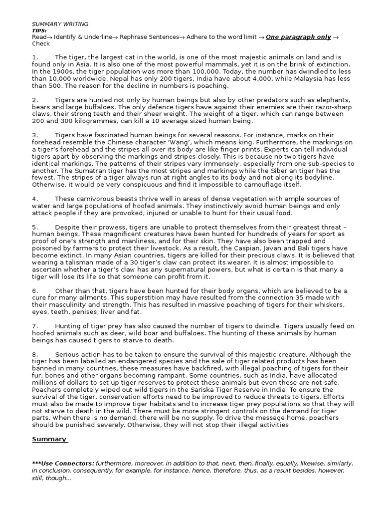Summary Writing Spm 2016 Tiger Poaching