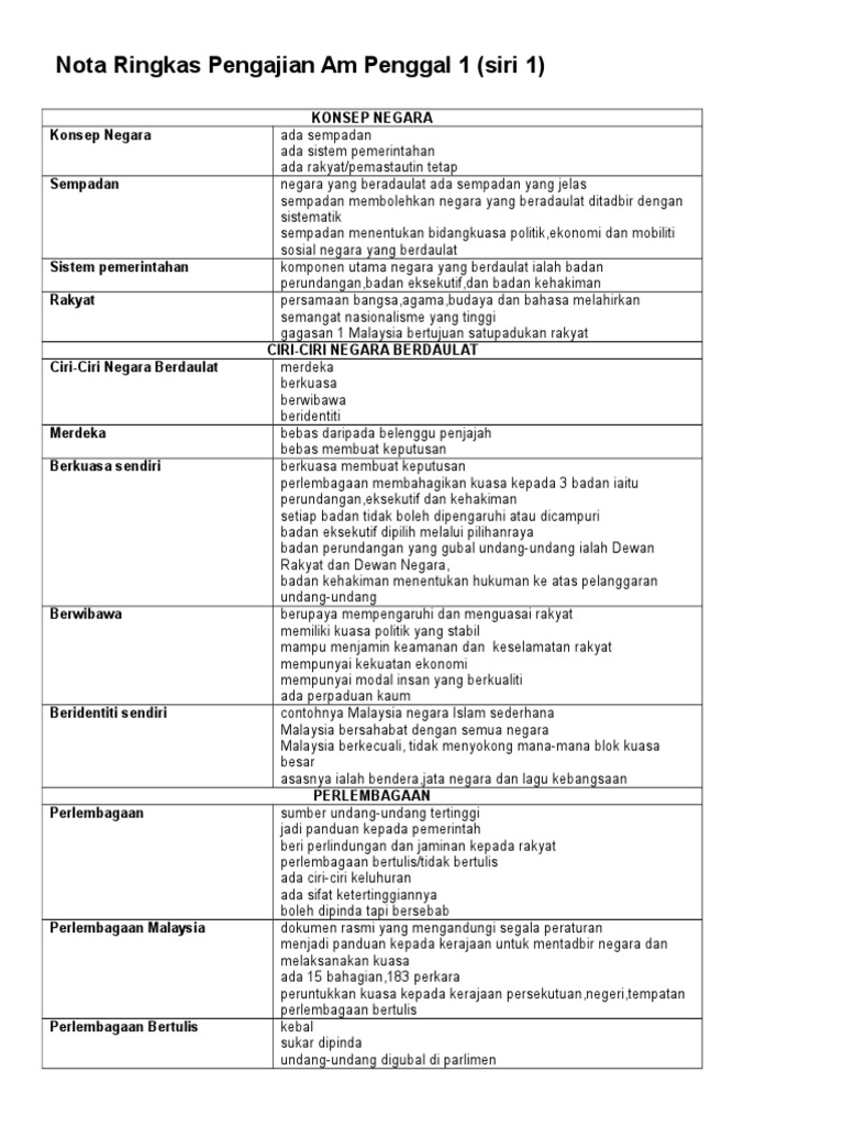 Nota Ringkas Pengajian Am Penggal 1 Docshare Tips