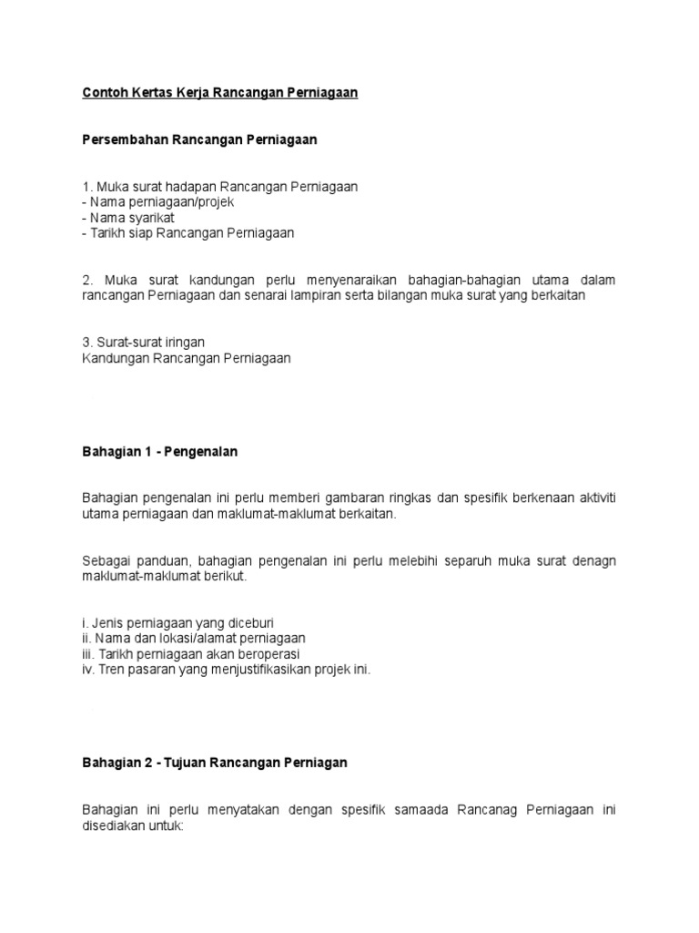 Contoh Kertas Kerja Rancangan Perniagaan