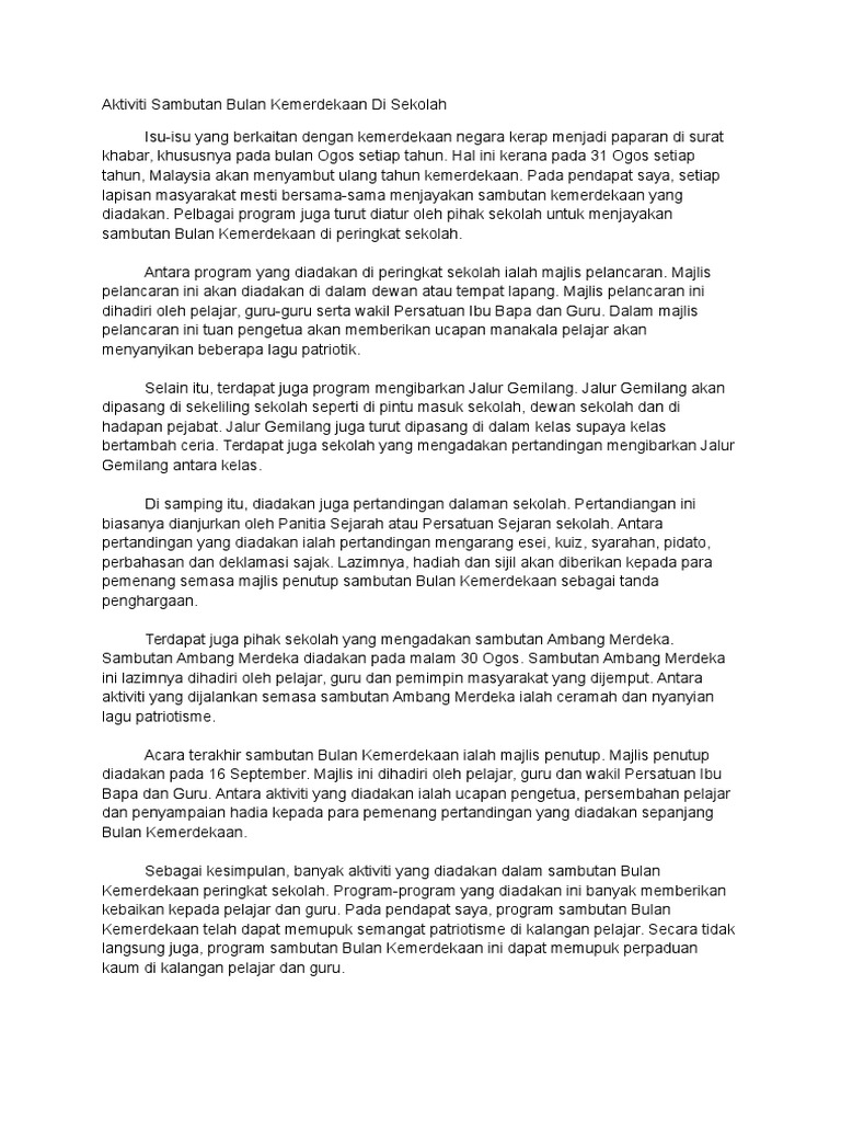 Contoh Karangan Aktiviti Sambutan Hari Kemerdekaan Di Sekolah