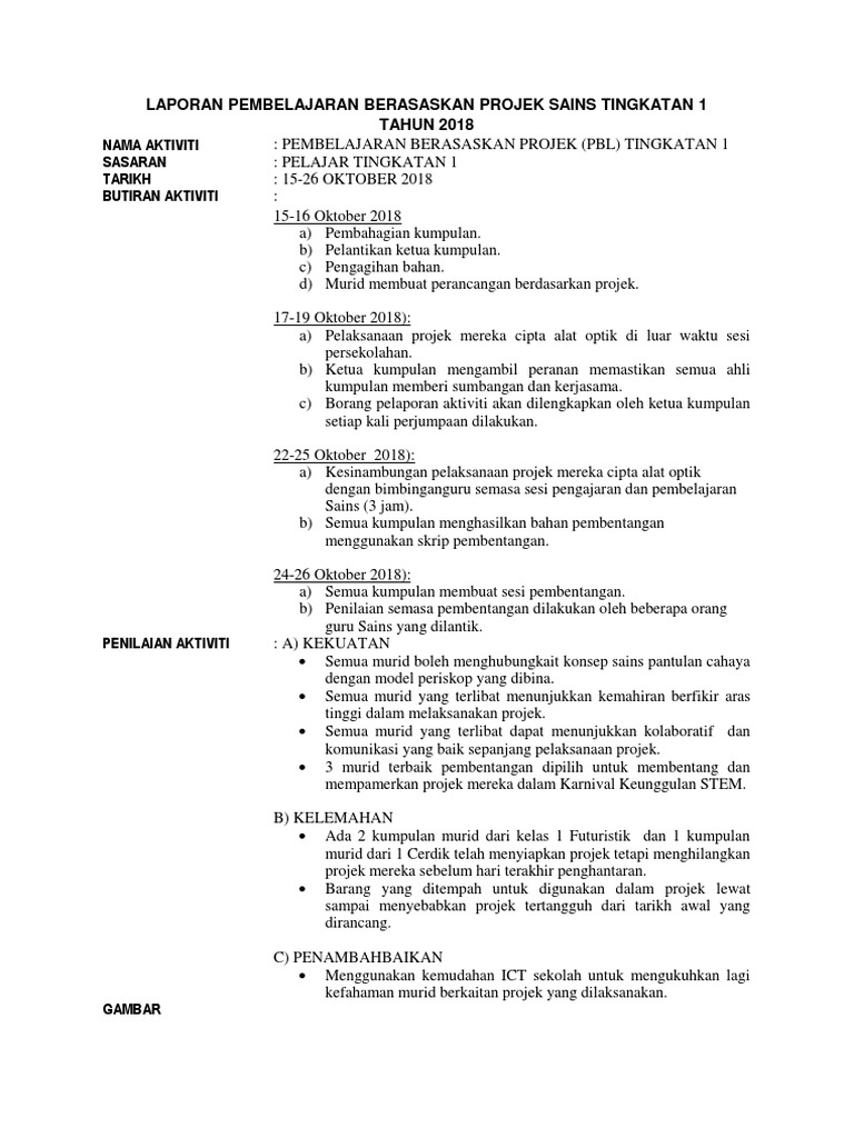 Laporan Aktiviti Pbl Murid