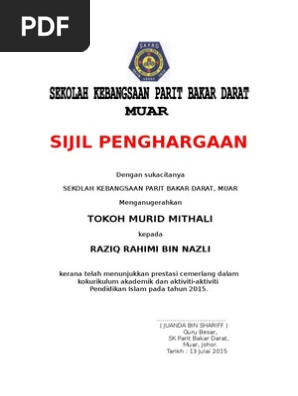 Sijil Anugerah Cemerlang Pelajar 2013 Download Pdf