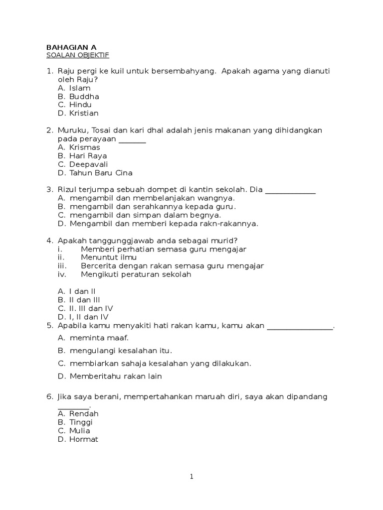 Contoh Soalan Pendidikan Moral Tahun 1 Kssr Tersoal P