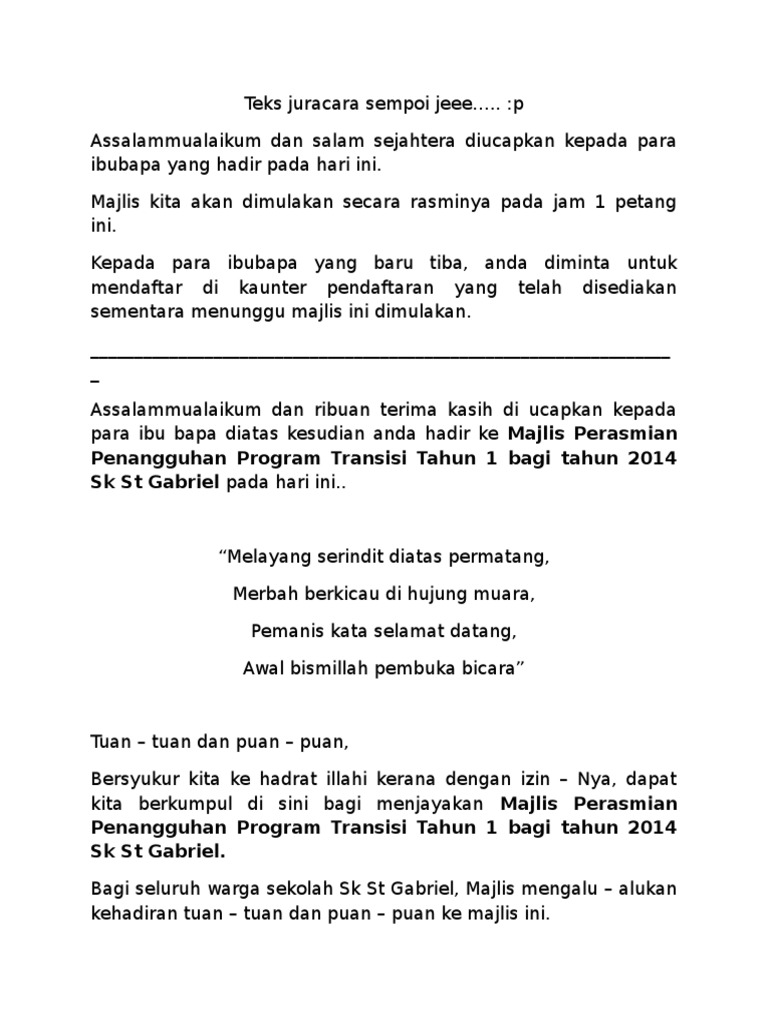 Teks Pengacara Majlis Perasmian