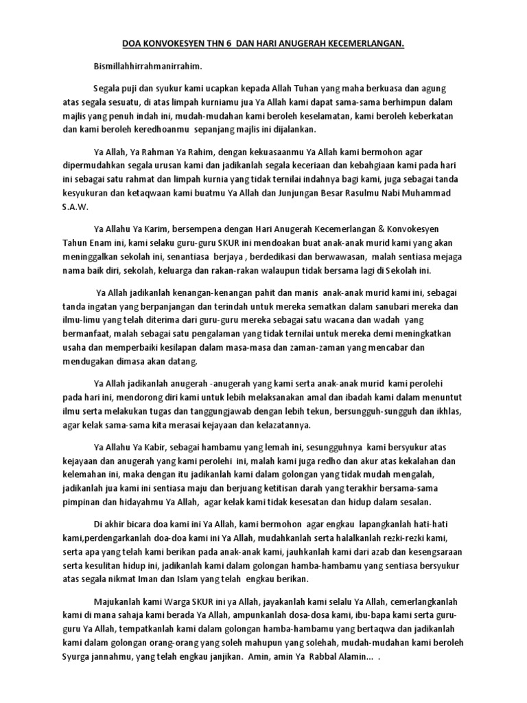 Doa Konvokesyen Thn 6 Dan Hari Anugerah Kecemerlangan
