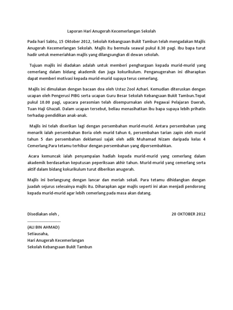 Doc Hari Anugerah Cemerlang Laporan Zubaidah Abu Bakar Academia Edu