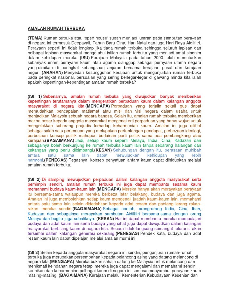 Doc Karangan Cemerlang Spm Kebaikan Amalan Rumah Terbuka Najat Ruhi Academia Edu