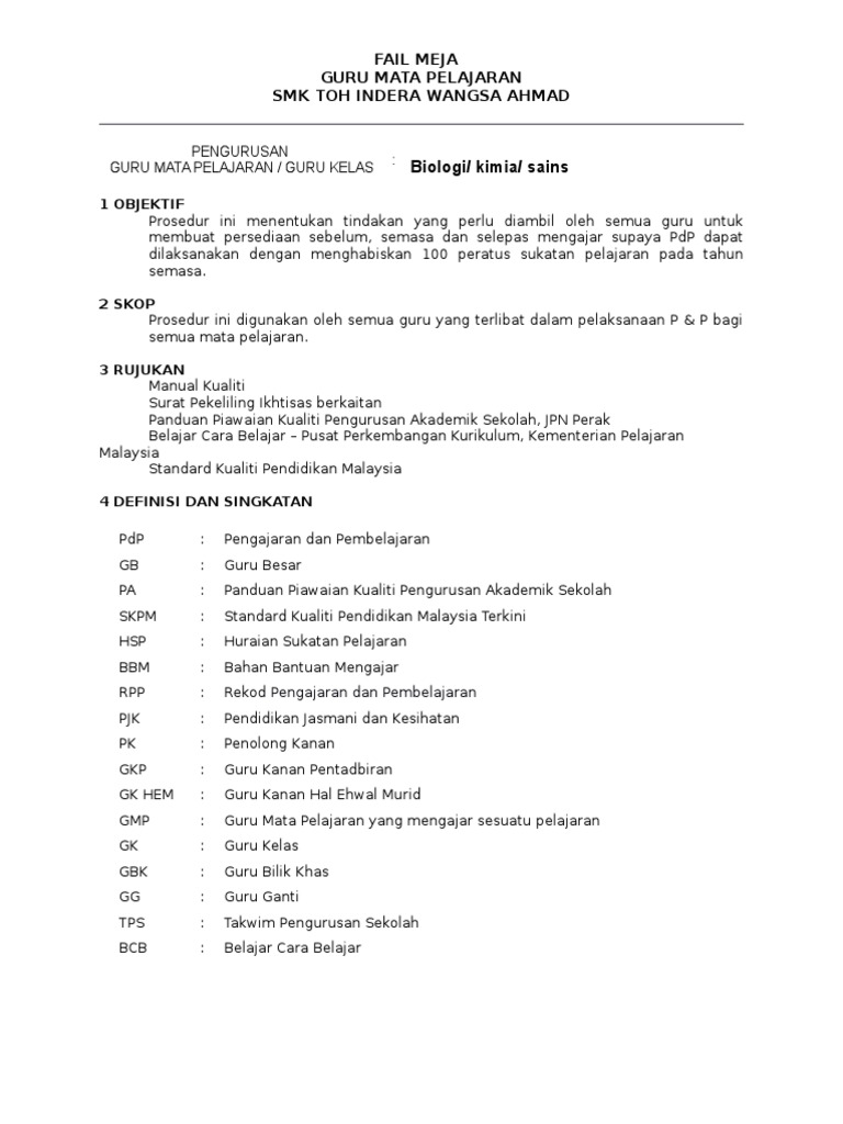 Doc Fail Meja Guru Mata Pelajaran 1 Guru Besar Sk Jalan Enam Academia Edu