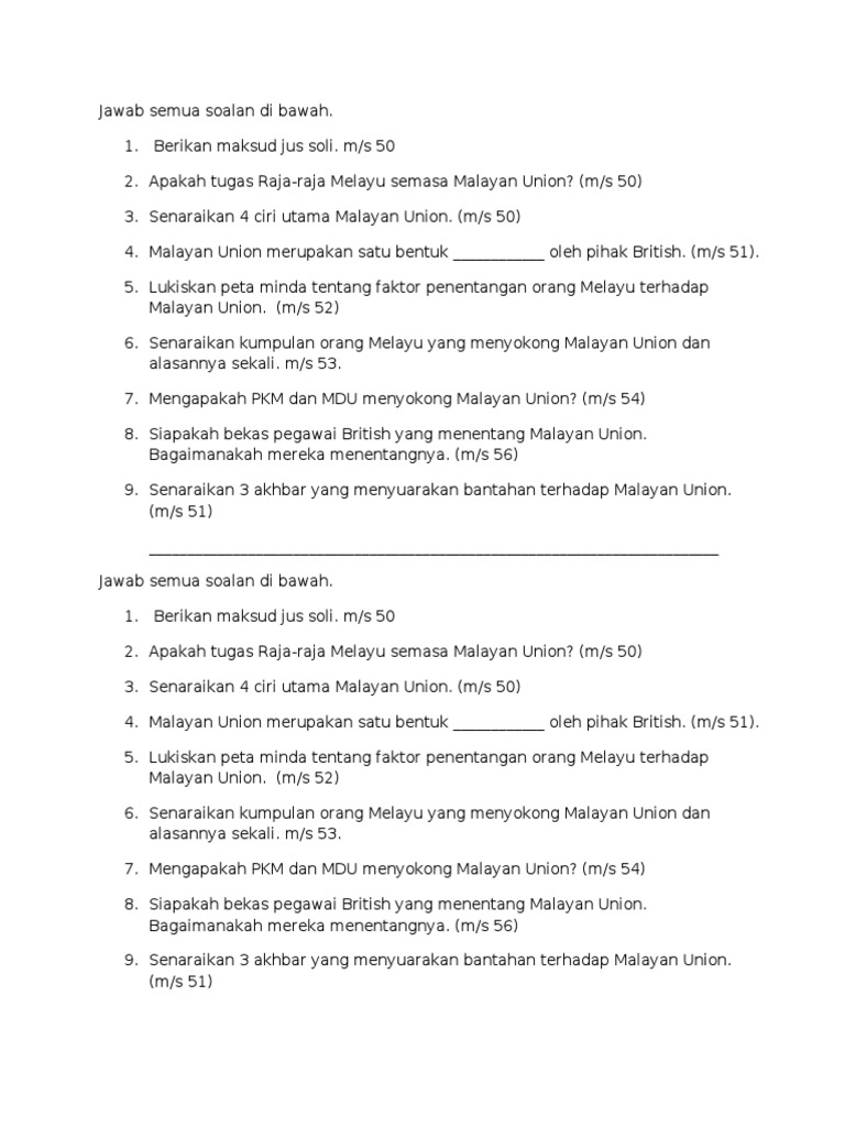 Jom Bina Semula Malaysia Bicaraindoktrinasi Soalan Sejarah Spm 2018 Andaikan Anda Sebagai Pemimpin Orang Melayu Semasa Malayan Union Berikan Cadangan Anda Untuk Membuat Penambahbaikan Terhadap Malayan Union Supaya Orang Melayu
