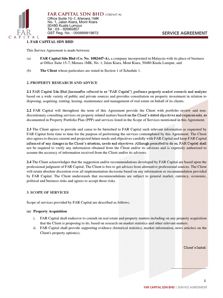 Far Capital Service Agreement Far7 Rm 5 567 29 10 19 Pdf Real Estate Appraisal Contractual Term