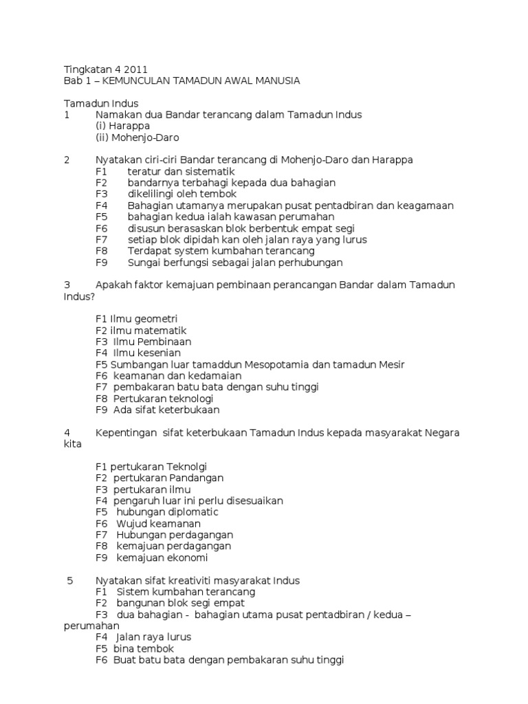 Bandar bandar juga dihubungkan dengan sungai. Namakan dua buah bandar terancang itu f1 mohenjo daro f2 harappa 2 m b. Bandar dibahagi kepada dua bahagian dan dikelilingi oleh tembok.