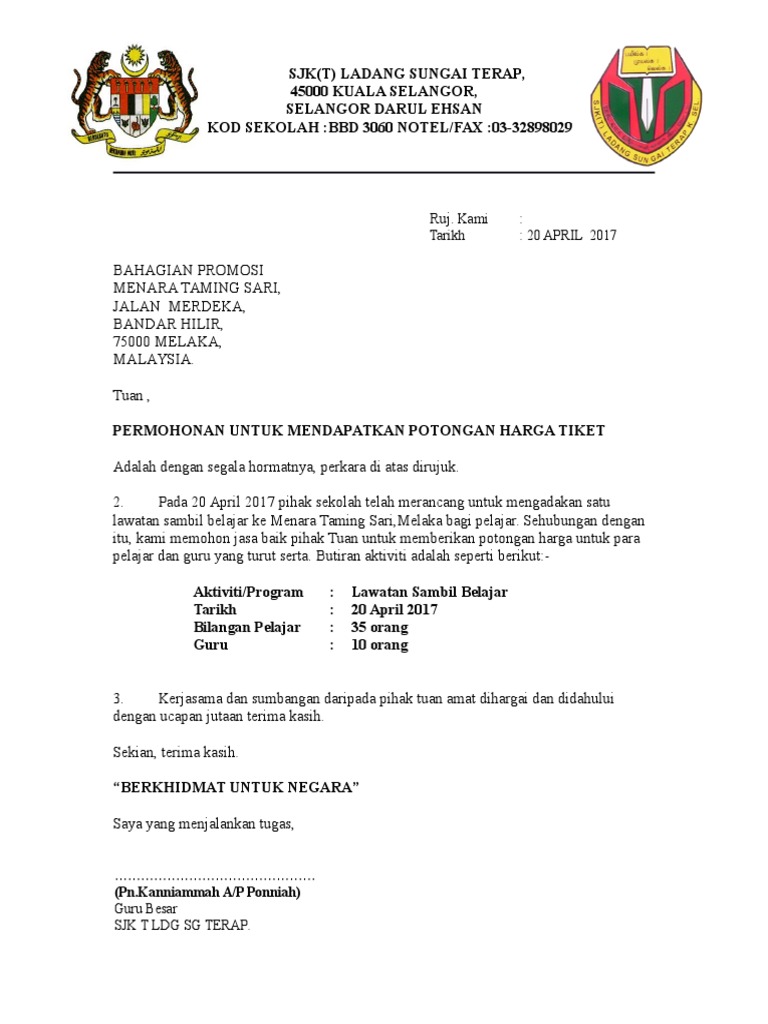 Surat Permohonan Menara Taming Sari